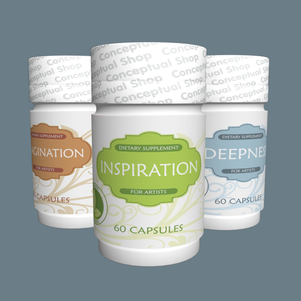 Lack of energy and / or talent in your artists? Our dietary supplements developed exclusively for creators are your best choice. Three presentations: Inspiration, Imagination and Depth (Bottles with 60 tablets - Made with 100% natural ingredients).